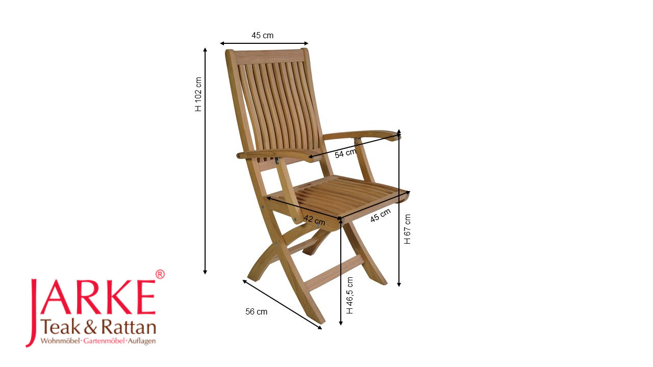Der Teak Klappstuhl  „Hery“ mit Armlehnen, gefertigt aus Kern-Teakholz vereint Komfort, Funktionalität und hochwertige Verarbeitung in einem Möbelstück.