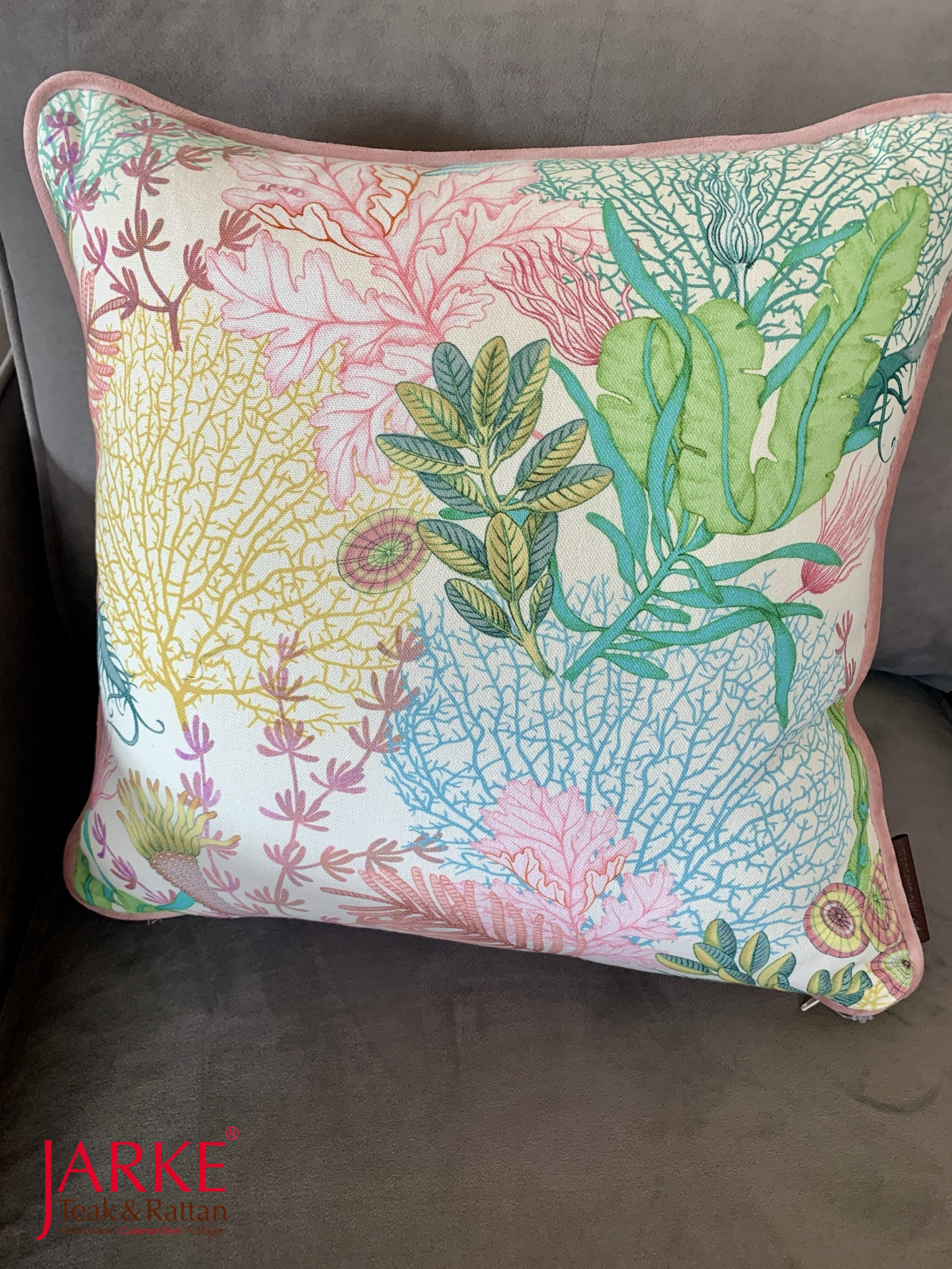 Wendbares Zierkissen mit Korallenprint, Rückseite aus Samt